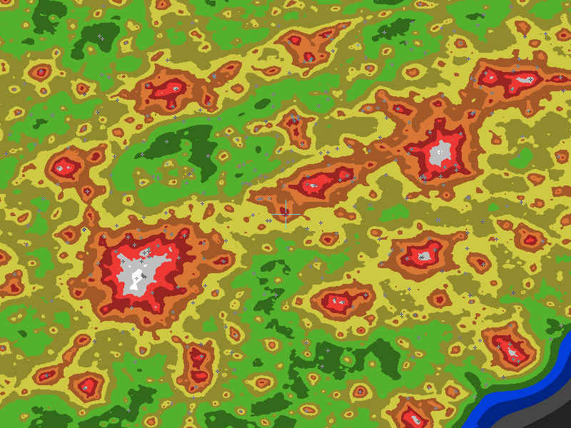 The central cross marks the location of the Anderson clear sky chart. Tiny crosses mark other charts. This map assumes an observer at sea level. A real observer should see a slightly darker sky.