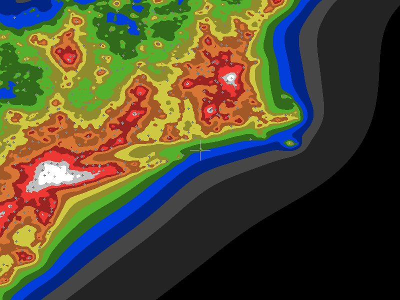 The central cross marks the location of the Block Island clear sky chart. Tiny crosses mark other charts. This map assumes an observer at sea level. A real observer should see a slightly darker sky.