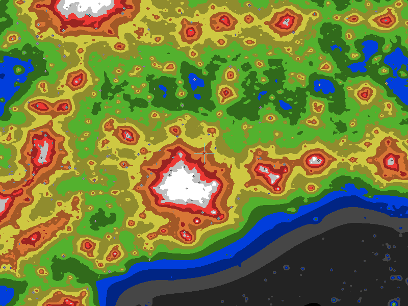 The central cross marks the location of the Cleveland(TX) clear sky chart. Tiny crosses mark other charts. This map assumes an observer at sea level. A real observer should see a slightly darker sky.