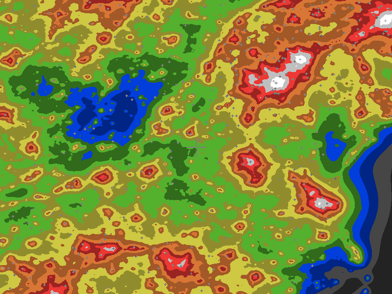 The central cross marks the location of the Dogwood Ridge Observatory clear sky chart. Tiny crosses mark other charts. This map assumes an observer at sea level. A real observer should see a slightly darker sky.