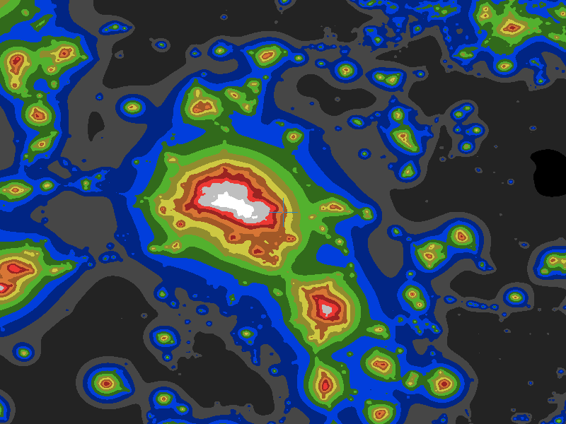 This map is a small exerpt (385mi east-to-west, by 346mi north-to-south) from the Light Pollution Atlas 2022 by David Lorenz. David recalculated the The World Atlas of the Artificial Night Sky Brightness with newer data.