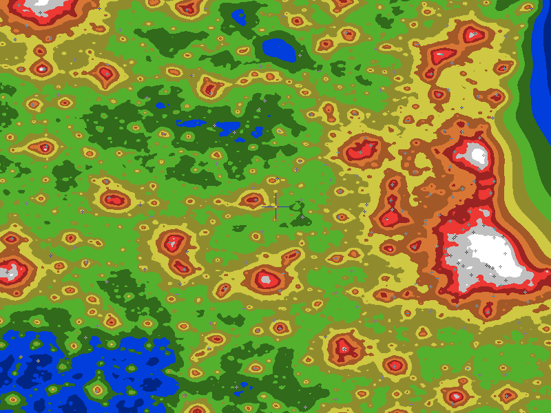 The central cross marks the location of the Galena clear sky chart. Tiny crosses mark other charts. This map assumes an observer at sea level. A real observer should see a slightly darker sky.