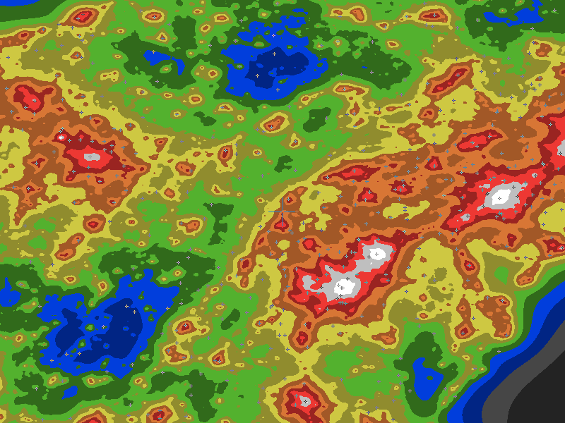The central cross marks the location of the Greencastle clear sky chart. Tiny crosses mark other charts. This map assumes an observer at sea level. A real observer should see a slightly darker sky.