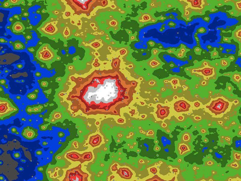 The central cross marks the location of the Joe Lalumia Observatory clear sky chart. Tiny crosses mark other charts. This map assumes an observer at sea level. A real observer should see a slightly darker sky.