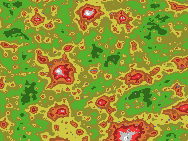 The central cross marks the location of the Millard Oakley STEM Center clear sky chart. Tiny crosses mark other charts. This map assumes an observer at sea level. A real observer should see a slightly darker sky.