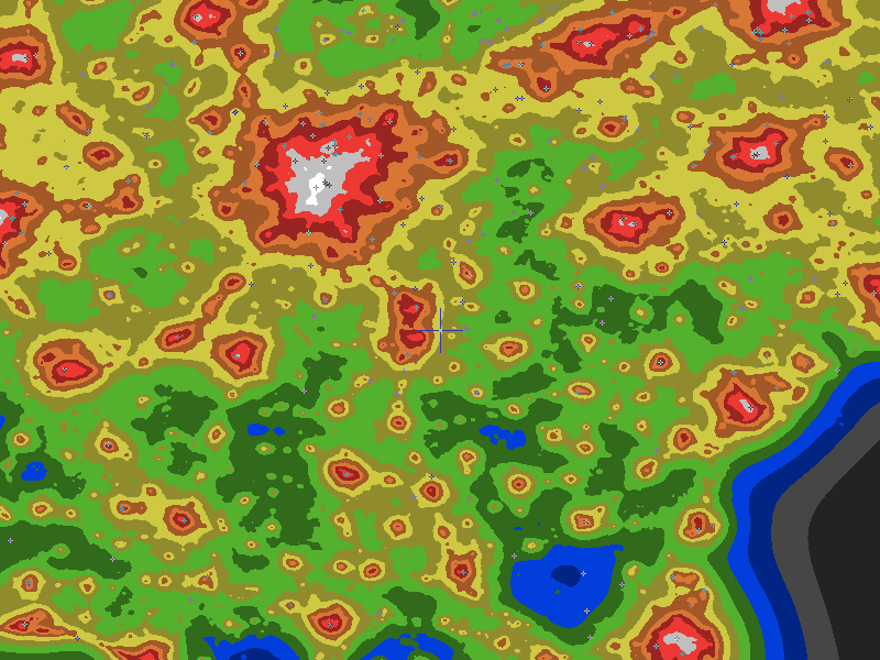The central cross marks the location of the Maor Observatory at COG Farms clear sky chart. Tiny crosses mark other charts. This map assumes an observer at sea level. A real observer should see a slightly darker sky.