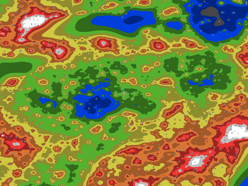 The central cross marks the location of the Mansfield clear sky chart. Tiny crosses mark other charts. This map assumes an observer at sea level. A real observer should see a slightly darker sky.