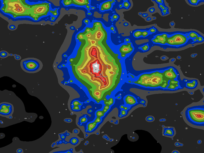 This map is a small exerpt (351mi east-to-west, by 346mi north-to-south) from the Light Pollution Atlas 2022 by David Lorenz. David recalculated the The World Atlas of the Artificial Night Sky Brightness with newer data.