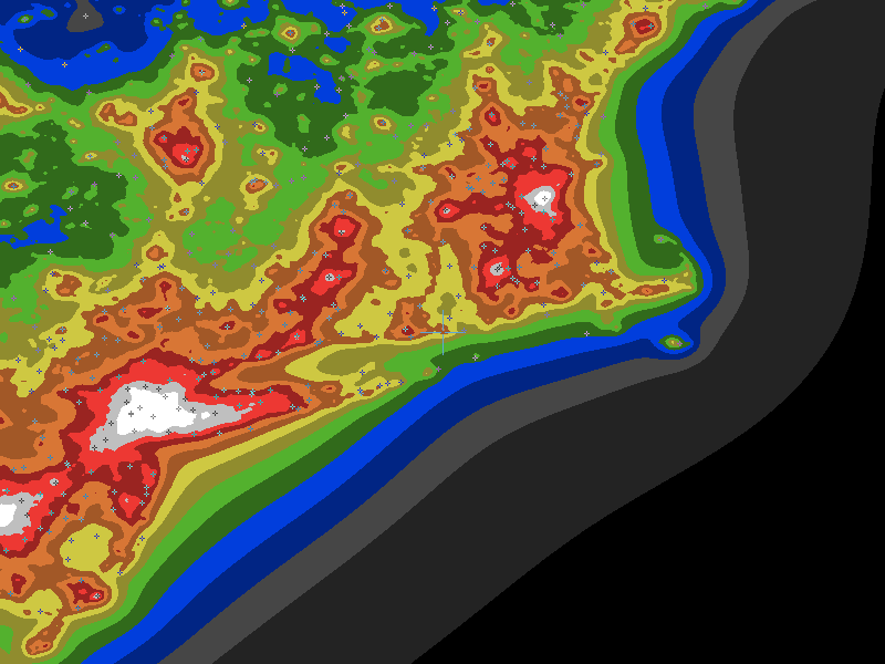 The central cross marks the location of the Pawcatuck River Observatory clear sky chart. Tiny crosses mark other charts. This map assumes an observer at sea level. A real observer should see a slightly darker sky.