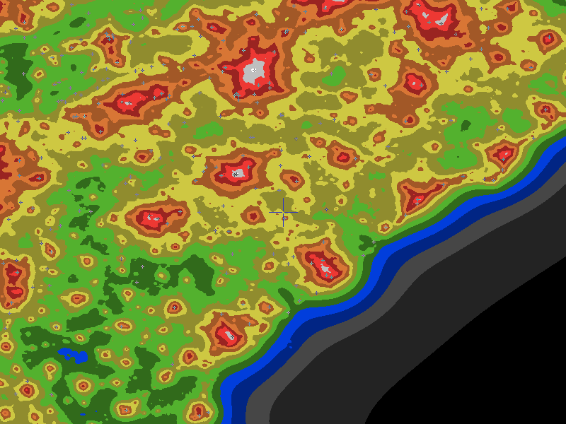 The central cross marks the location of the Santee State Park clear sky chart. Tiny crosses mark other charts. This map assumes an observer at sea level. A real observer should see a slightly darker sky.