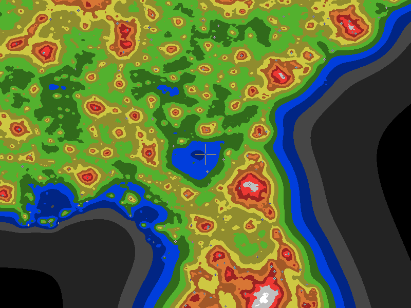 The central cross marks the location of the Stephen C. Foster State Park clear sky chart. Tiny crosses mark other charts. This map assumes an observer at sea level. A real observer should see a slightly darker sky.