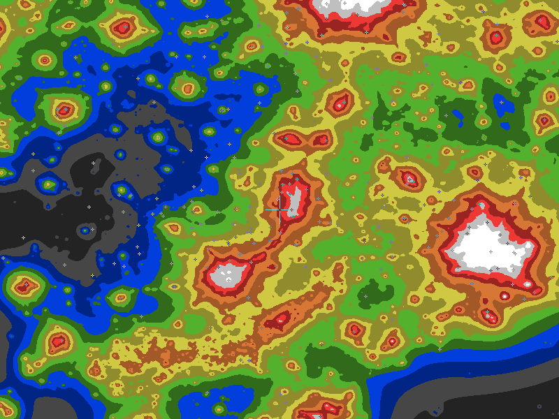 The central cross marks the location of the Villa Stellarum clear sky chart. Tiny crosses mark other charts. This map assumes an observer at sea level. A real observer should see a slightly darker sky.