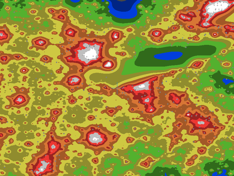 The central cross marks the location of the Vermilion clear sky chart. Tiny crosses mark other charts. This map assumes an observer at sea level. A real observer should see a slightly darker sky.