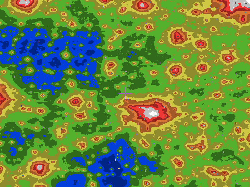 The central cross marks the location of the Whiteside clear sky chart. Tiny crosses mark other charts. This map assumes an observer at sea level. A real observer should see a slightly darker sky.