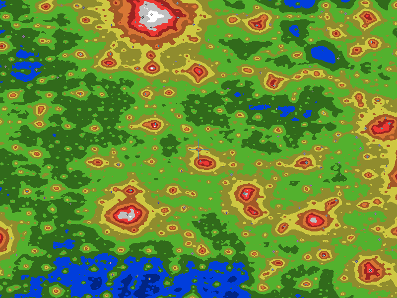 The central cross marks the location of the Wartburg College Observatory clear sky chart. Tiny crosses mark other charts. This map assumes an observer at sea level. A real observer should see a slightly darker sky.