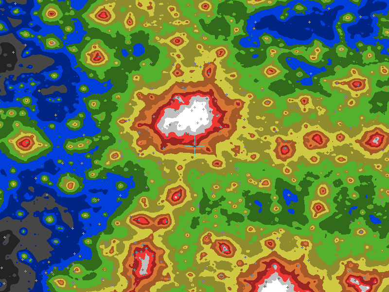 The central cross marks the location of the Waxahachie clear sky chart. Tiny crosses mark other charts. This map assumes an observer at sea level. A real observer should see a slightly darker sky.