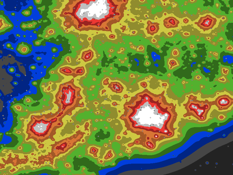 The central cross marks the location of the College Station clear sky chart. Tiny crosses mark other charts. This map assumes an observer at sea level. A real observer should see a slightly darker sky.